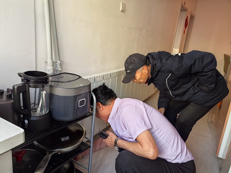 12月10日下午,筆者在郵電長樂小區(qū)1號樓看到正在為熱用戶解決不熱問題的韓建忠。據(jù)了解,該小區(qū)是上供下回老式大串聯(lián)系統(tǒng), 1—6樓熱用戶家中臥室和客廳暖氣都很熱,但是廚房暖氣溫度普遍不理想,之前,韓建忠通過下地溝排查發(fā)現(xiàn)供回水管道循環(huán)都沒有問題,分析應(yīng)該是用戶自己家中管道堵塞導(dǎo)致,為了幫用戶解決這個問題,韓建忠聯(lián)合社區(qū)網(wǎng)格員提前約好了6戶熱用戶,通過逐戶排查,最終確定問題出在2樓和6樓熱用戶家中,由于2樓熱用戶家中暖氣管道堵塞,6樓熱用戶家中暖氣存在不同程度的下沉且未安裝排氣閥導(dǎo)致管道積氣嚴(yán)重,在疏通2樓暖氣管道并對6樓反復(fù)沖管后,暖氣漸漸有了溫度。第二天,不放心的韓建忠再次去用戶家查看,發(fā)現(xiàn)溫度還是不理想,于是,他又下地溝反復(fù)進行沖管,最終熱用戶家中廚房暖氣全部恢復(fù)正常。